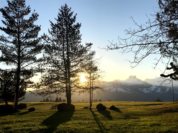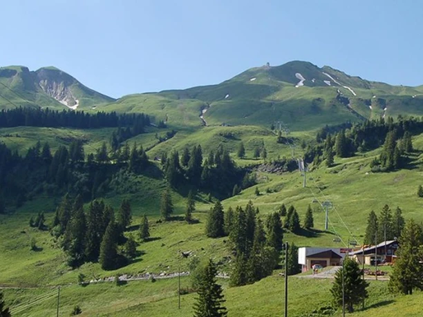 From the cable car mountain station it goes to Stooshorn, at the old mountain station of the funicular. Then there is a gentle ascent to Brunnerboden, the highest point of the hike. There you have the choice again between various mountain restaurants with sunny terraces.