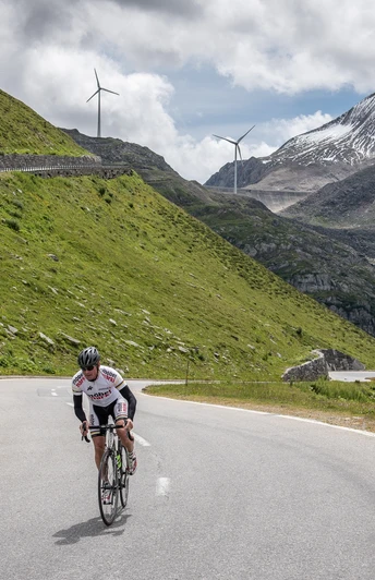 The pass road through the quiet Bedretto Valley into Upper Valais was only built in 1969. The well-developed Nufenenpass is, after the Umbrail, the second highest Swiss Alpine pass. The cycling route starts in Airolo in the canton of Ticino. Through the idyllic Bedretto Valley, you ride past dense fir forests and lush meadows along the Nufenenpass road. The winding pass road to the pass height fascinates with a breathtaking mountain backdrop. Upon arrival, road cyclists enjoy an unforgettable panoramic view over snow-covered mountains. Not only road cyclists appreciate the diverse nature in the Bedretto Valley, ibexes also clearly feel at home here.