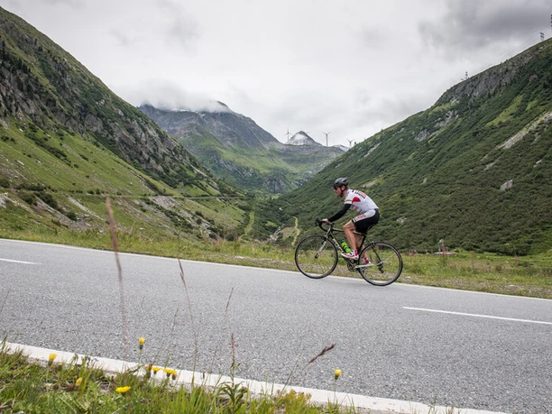 From the height of the Nufenenpass at 2,478 m above sea level, it descends into the canton of Valais towards Ulrichen. Here, too, you enjoy a great view while feeling the cool breeze during your ride.Â