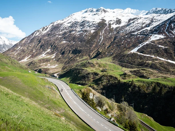 The gentle ascent from Andermatt to the pass summit at 2046 m above sea level offers magnificent views of the entire Ursern Valley and the Gemsstock. The route of the Matterhorn Gotthard Railway also leads directly over the pass summit. The panoramic train “Glacier Express” reaches its highest point here on the journey from St. Moritz to Zermatt.