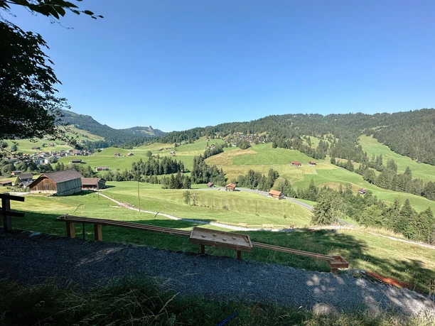 Village Oberiberg – Kirchenstrasse to the church – Guggernstrasse, after about 200 m turn left onto Michelmattstrasse – Karlfaberweg - Jessenenstrasse – village - Tschalunstrasse - Roggsytenstrasse - Postwäldli - Seebis Beiz - Moos - schoolhouse - Kirchenstrasse - Roggen parking lot.