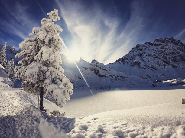 Right at the Berghotel Trübsee lies the start of the trail, leading downhill past the sledding park to Trübsee. Covered by snow and ice, it is not visible why Trübsee got its name. But it can be revealed that the mountain lake, also filled with emerald-green glacier water in summer, puzzles visitors about its naming. Once the hut is reached, the route leads upwards to the right via Chrützhubel (2.5 km) over a moraine ridge to a beautiful viewpoint. When you have had enough of the view, continue to the mountain station of the small rustic mountain railway "Älplerseil." The spectacular deep view makes you forget all efforts. Back at the starting point, the Trübsee mountain station, the Titlis Xpress brings you back down to the valley.