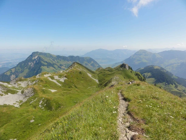 The trail now leads over a panoramic ridge to the Arvigrat. New views open up again and again - from the Pilatus to the Rigi and far into the Mittelland.