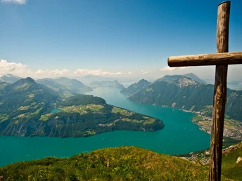 If you cannot complete the ridge route from Klingenstock to Fronalpstock, you do not have to miss the special panoramic experience. The panorama route is basically a mini-version that focuses on the final highlight of the ridge route. You travel to the car-free resort village of Stoos at 1300 meters with the steepest funicular railway in the world. Then you go up to the 1922 meter high Fronalpstock by chairlift. Once at the top, the view overwhelms you. Ten lakes and countless peaks of Central Switzerland lie at our feet. The comfortable route, accessible with an all-terrain stroller, runs relatively flat and leads back to the Fronalpstock Hotel | Restaurant. The little ones can enjoy the large playground or play around with the dwarf goats. The picnic area at the playground and various rest areas at the summit invite you to linger.