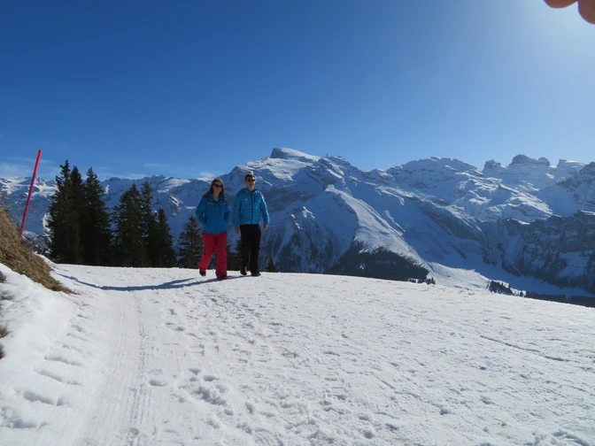 From Engelberg station, the free local bus takes you to the Brunni valley station, from where the Brunni cable car goes up to Ristis. Here you reach the starting point of the Panorama Trail. Always slightly uphill and with breathtaking views, you proceed on the well-groomed winter hiking trail towards Rigidalalp. In good weather, the photo motif "local mountain Hahnen" shows itself at its best and stands out with its snow-covered planks against the bright blue sky. After a half-hour walk, the mountain hut Rigidalalp is reached. Cozy rustic atmosphere and Engelberg specialties are offered to guests in good weather. After refreshing yourself and enjoying the view, the ascent to Brunnihütte is taken underfoot. Crossing the ski slope, the destination, the SAC hut, is already in sight. The large sun terrace offers space for sun lovers and tired hikers. What's better than ending your hiking day with a delicious hut coffee and a view of the Titlis? The way back to the valley then goes comfortably by chairlift and from Ristis by cable car.