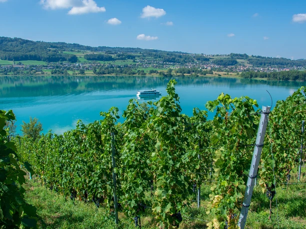 A short detour to the 800-year-old water castle Hallwyl is worthwhile in Seengen. From Seengen, you pedal comfortably on the bike path towards Meisterschwanden, where the Hotel Resort & Spa Seerose invites you to enjoy a break with a view of the turquoise shimmering Lake Hallwil. Along the shore and always accompanied by a magnificent panoramic view of the Alps, you cycle to Aesch. Here, the historic Klosterhof Winery invites you to an enjoyable rest. For more than 400 years, noble drops have been produced here from local grapes. The mostly flat path takes you full of impressions back to Hitzkirch.