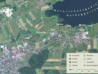 The trail offers nature lovers and anyone seeking relaxation an ideal opportunity for observing nature at five marked observation points between Hochdorf and Baldegg railway stations. The beginning and end of the trail feature large-format overview maps. The observation points benefit from richly illustrated panels detailing habitats and their typical flora and fauna. The trail is easily accessible from both sides by public transport. The unmade gravel path is suitable for pushchairs and therefore family-friendly.