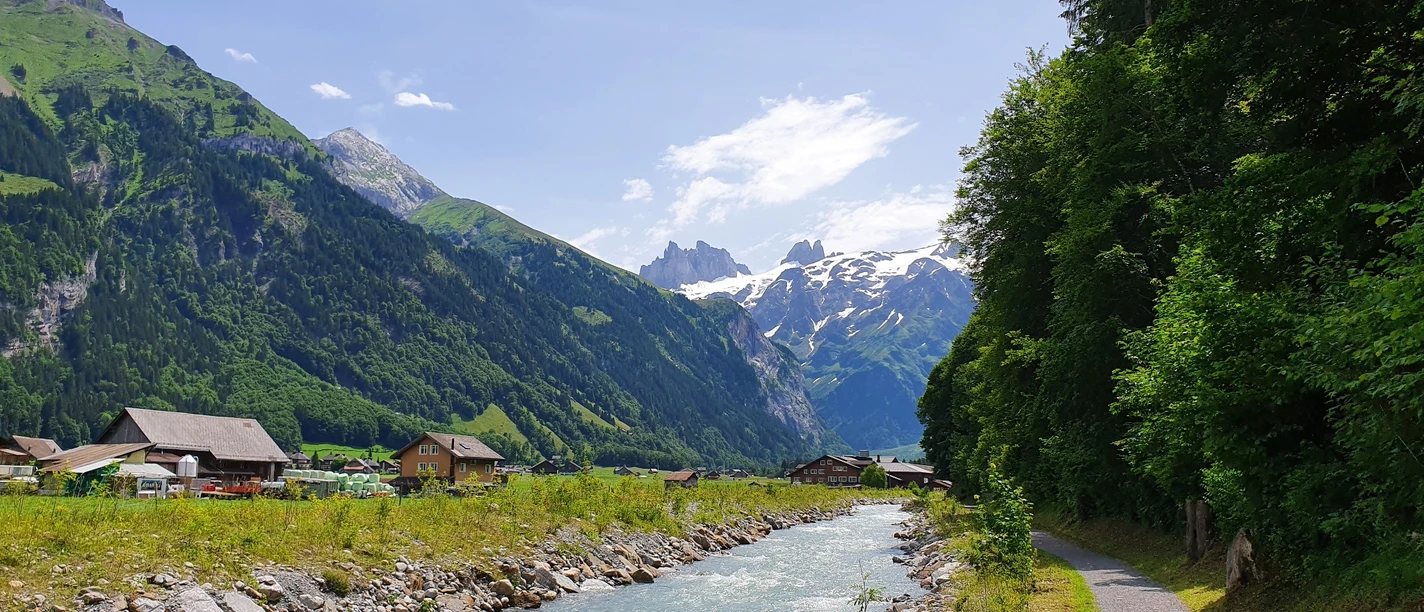 The walk starts at Engelberg station and leads right through the village to the Engelberger Aa. Just below the Sportingpark, the bridge crosses the river and onto the Professorenweg. From there, you walk with the Engelberger Aa on your left and the forest edge on your right on the flat path all the way to the Sporthotel Eienwäldli where you can first recharge. The path changes river side and follows the road to the Fürenalptal station, the endpoint of the walk.