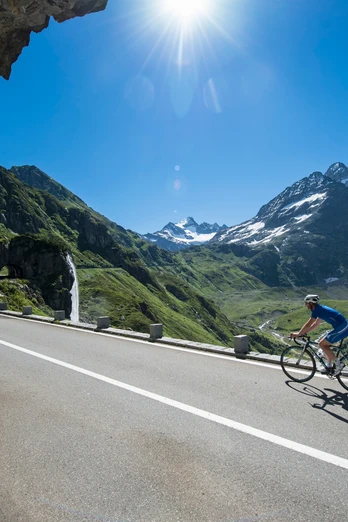 The route starts in Andermatt and leads through the Schöllenen to Göschenen and further to Wassen. From Wassen, you ride into the lovely Meien Valley, from where it goes through the rugged mountain world up to the Susten Pass. Once you have climbed the pass, you will be greeted by the Steingletscher glacier. No other route shows the contrasts of the Gotthard region as clearly.