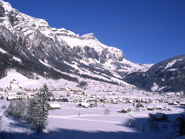 Everything is right for leisure skiers on this round course groomed for both classic and skating styles: the length of 6 kilometers, the gentle ups and downs on the valley floor, and the splendid Muotathal landscape. The Widmen and Wichel loops are also used by walkers and sometimes even the sled dogs of the Husky Lodge. What a joy to see these power and energy packs at work. Those who want to train after work use the 1.7-kilometer-long night trail. The trail entrance is signposted from the public parking lot on Poststrasse.