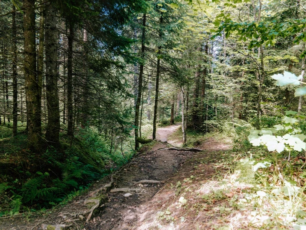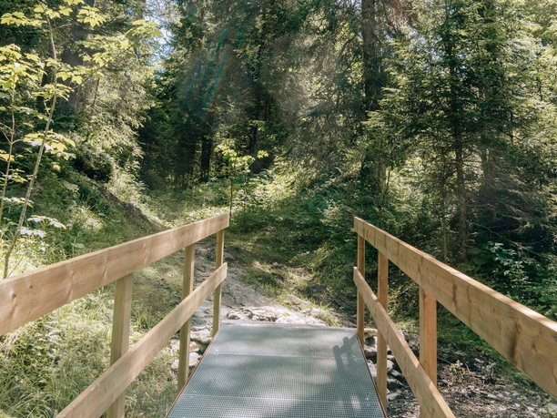 Past inviting barbecue areas at Fuederegg, you reach Laucherentobel. There is a descent to the mineral water spring called the "Mountain Spirit." Trying it is a must: hold your nose and take a sip of this miracle water.