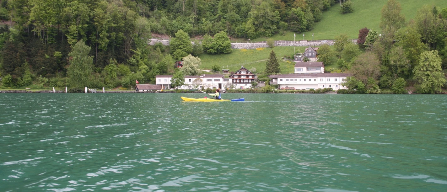 At the entrance to Brunnen there is a nature reserve. Keep distance from the shore and paddle outside the yellow buoys.