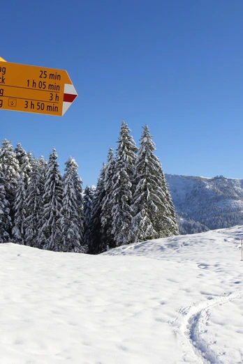 For two to three hours you hike through untouched snowfields with glittering views, far away from the hustle and bustle of everyday life. The start is located at Oberdorfstrasse in Rothenthurm, from where you climb about 300 meters in altitude to Ruchegg, then take on the descent (again about 300 meters altitude) to the Tändli restaurant in Trachslau. The path can also be done in reverse.