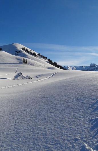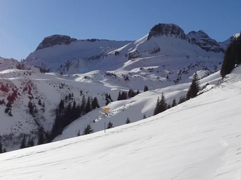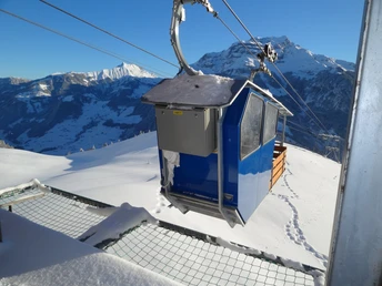 With the Buiräbähnli Rugisbalm - Mettlen. This modest peak, situated to the east of the Widderfeld Stock, is accessed from the Engelberg valley. The cornice-crowned point drops steeply down towards the village, offering a magnificent view into the valley. Sensational powder snow can often be found on the picturesque slopes of Lutersee.