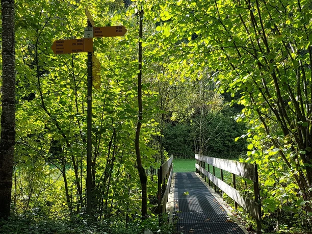 The hiking trail begins at Ohmstalerstrasse in the center of Schötz. From there, it crosses the Wigger stream and through the forest to the Kurhaus Ohmstal restaurant. Then follow the hiking trail towards Chli Lörzigen to Hof Gallis, which also offers a nice view. From there, the path leads over a meadow along a wooded slope to Hünkihof. There, the signpost points towards Hällershof (Hellerhof). You have the choice between two paths of equal length; we chose the left path through the forest. Soon you will see the village of Gettnau.