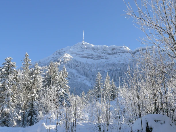 The trail is considered an insider tip. The mostly flat circular route covers 5.5 kilometers. The start and end point is at the mountain station of the Küssnacht-Seebodenalp cable car and takes you along the ridge towards Alp Ruodisegg. After a long left curve, the trail leads back to the Seebodenalp parking lot. The wonderful view of the Swiss Plateau accompanies you constantly. The trail is groomed when snow conditions are good and can be used free of charge.