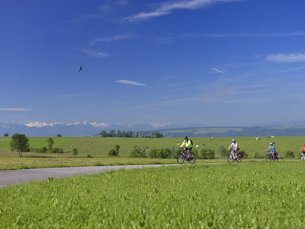 On the first part of the route, you cycle leisurely along Lake Hallwil and then continue through agricultural areas to Hitzkirch. Then calf and engine power are required, as it goes really uphill to reach the Seetal heart loop. Fortunately, Heidegg Castle is located on the route, where you can take a break in the 300-year-old castle garden. From the rose garden, you have a wonderful panoramic view of Lake Baldegg and the Central Swiss Alps. At Sulzer Kreuz, you join the Veloland route 599 towards Lenzburg.