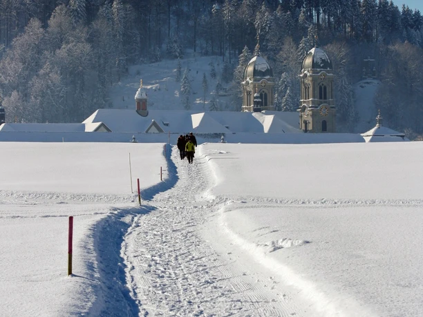 On the way back, you can watch cross-country skiers gliding smoothly over the Schwedentritt trail. Along the way is the Galgenchappeli, next to which there used to be a place of execution. Those sentenced to death received their last blessing in the former chapel. Today it serves as a pilgrim’s weather shelter. The circular route ends again next to Einsiedeln Abbey, which is visited by many pilgrims as Switzerland’s most important pilgrimage site.