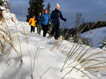 The duration of the route depends heavily on snow conditions. Fast and fit snowshoe walkers can probably complete the route in about one hour; others who prefer a more relaxed pace will certainly need 1.5 hours.