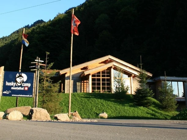 In the idyllic mountain village of Illgau at 800 m above sea level, a signpost above the village centre shows you the path towards Muotathal. Behind the gravel dump you first climb a slope, then the path leads you steeply downhill through a wildly romantic forest past a magnificent waterfall. At the bottom of the valley in the Tristel, near the Vita Parcours on the banks of the Muota, a generously laid out fireplace awaits you. Entering the valley along the Muota river, you will reach the village of Muotathal 610 m above sea level in a short time. About 45 minutes further on, you will find the accommodation Hüttenhotel Husky-Lodge on the beautiful Muota dam.Translated with www.DeepL.com/Translator (free version)