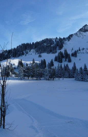 Just behind the car-free holiday resort lies the small mountain lake. In winter, its water is used for snowmaking on the slopes; in summer, children love it because of its water play equipment. From Stoos-Seeli, the hike leads towards Frontal. Under the thick snow cover lies the Teufböni moor. Before your eyes is a panorama that stretches from the mountain village Stoos over the Schwyz basin to the two Mythen peaks. Finally, the circular route leads back to the village, where the cozy inns invite you to warm up again.
