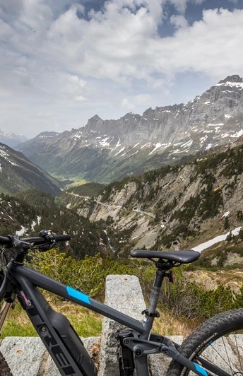 Along the entire route, there is a connection to the PostBus line. The buses carry bicycles but these must be registered by 4:00 p.m. the day before at +41 58 448 20 08.