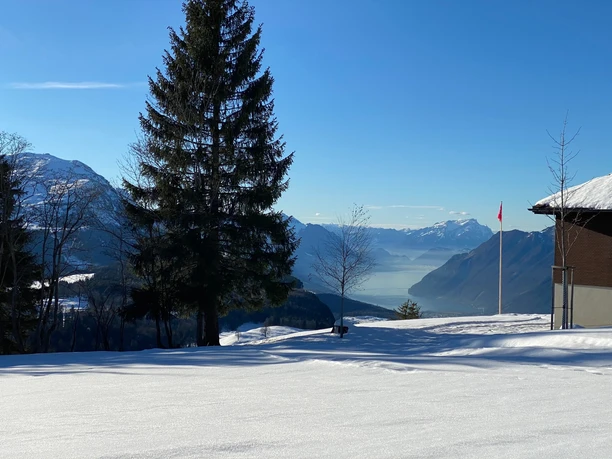 The round walk starts above the picturesque mountain village of Illgau at St. Karl, considered a "place of power". A small aerial cableway takes winter walkers into the secluded landscape, which fills one with energy. With views of the Schwyz and Muota valleys and the ski slopes of the Stoos resort on the opposite flank of the valley, the route leads via Eseltritt to Ibergeregg. Although we're making good progress, we're slowing down at the same time. The deep silence is followed by lively activity at the family-friendly ski resort of Ibergeregg. After the climb here, the views of the Central Swiss mountains and the panorama are wonderfully energising. On the way back we're immersed in a quieter world in Grossenboden and return peacefully to St. Karl.