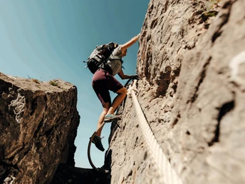 After this vista, the real highlight of stage 5 follows. You follow the Gräfimattgrad in the direction of Schluchberg and reach the key passage. The rock passage Wagenleis is made safe with thick ropes to hold on to. However, surefootedness and a head for heights are still a prerequisite. The hike continues over the Schluchigrat to the Storegg pass. Nearby Lake Luter is a tempting place for a break and gives you renewed strength for the last steep ascent to the Bocki. From the highest point of the hike at alt. 2155 m, it's downhill all the way, past the Haltenhütte refuge and the Lake Untertrüb alp dairy. Stage 5 ends in the village of Engelberg.