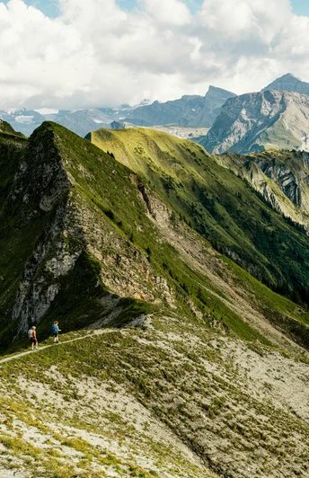 The CabriO open-deck / double-deck cable car takes you high up the Stanserhorn and opens up a panorama of the mountains of Central Switzerland. Soon, however, it's time to turn your back on the Pilatus and Lake Lucerne, because stage 5 is demanding. You follow the Nidwaldner Höhenweg (high-level trail) to the Storegg pass and continue past little Lake Luter, via Bocki and Lake Untertrüb to Engelberg.