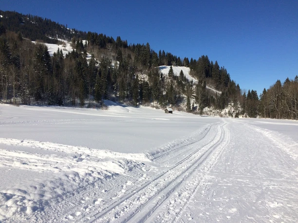 The Thorbach cross-country ski trail, near the former ski lift valley station, is 2 kilometers long and located in easy terrain. It is groomed for skating and classic techniques. The trail may also be used in the evenings but is no longer illuminated. In the moonlight and equipped with a headlamp, the trail is perfect for a cozy round after sunset.