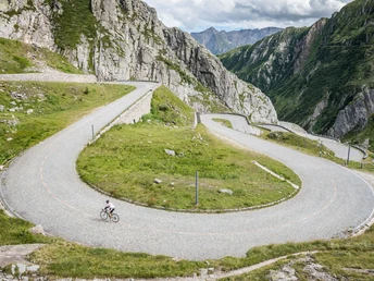 Get on your racing bike and take on the challenge of the 106 kilometers over the Furka, Nufenen, and Gotthard passes. Bruno Risi, the former world and European champion in track cycling, Olympic silver medalist, and multiple winner of six-day races, takes you on his route. Experience a ride that is demanding both in endurance and experience.