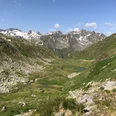 We then promptly set off for the descent through the Fellital. On the first high plateau Murmetsbüel the morning sun slowly comes. It warms us. Now we can also take the first refreshment break. It is sparse and quiet here and we enjoy the peace away from any civilization.