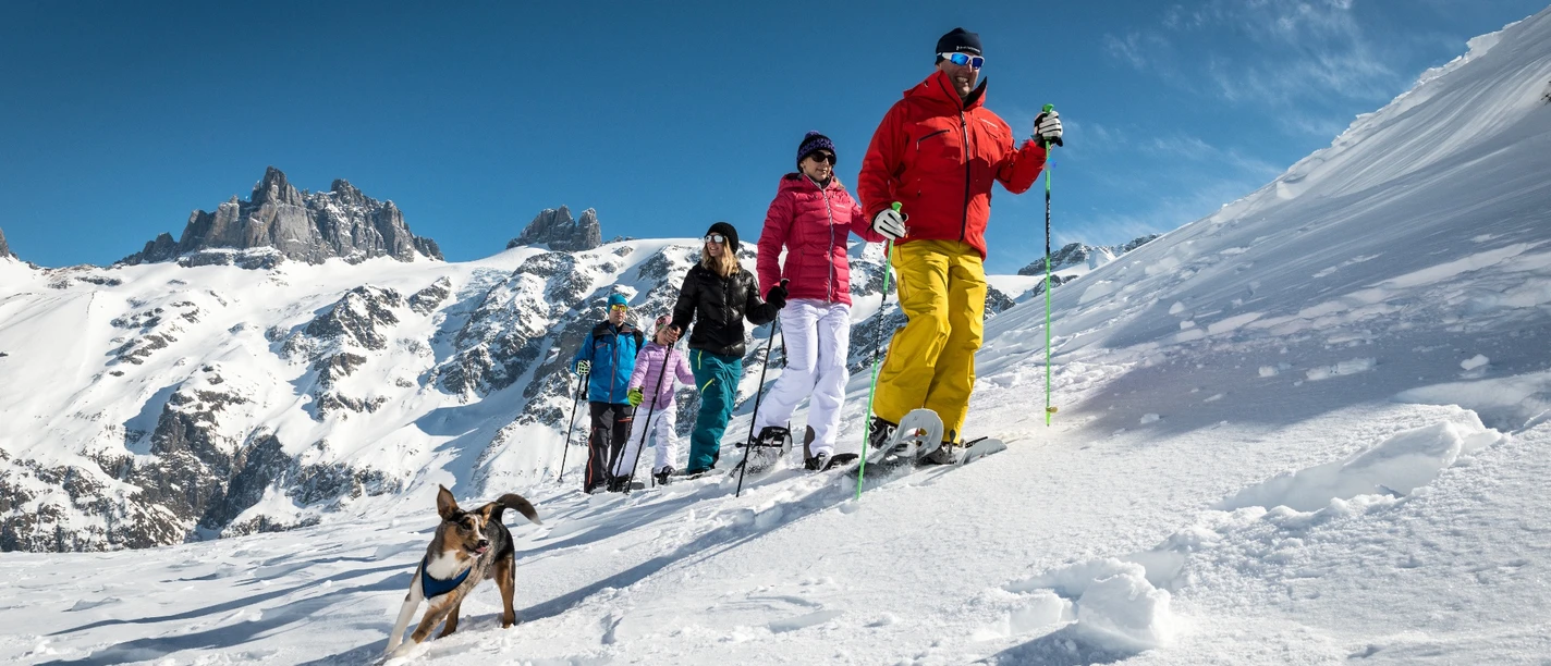 Please walk along the marked and secured snowshoe paths. The user is responsible for the proposed routes. If you are planning a different route, please refer to the avalanche bulletin, maps and weather forecast.