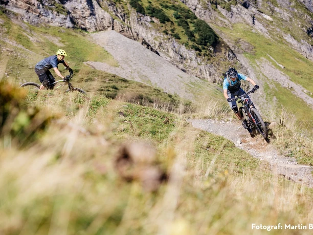 The Trudy Trail - named after the hut warden at Jochpass - is the more demanding of the two trails at Jochpass. On the way there are some more difficult passages, steep face curves and obstacles. Perfect for downhill enthusiasts. There are two ways to get to the starting point of the trail. Either you choose the comfortable alternative and take the Titlis Xpress from Engelberg and get off at the Trübsee mountain station and drive along the left shore of the lake to the Jochpass valley station. The short section takes about 5 minutes. Or you can pedal from the valley station of the Titlis cableway via Untertrübsee to Trübsee. To start the trail, take the chairlift from there.