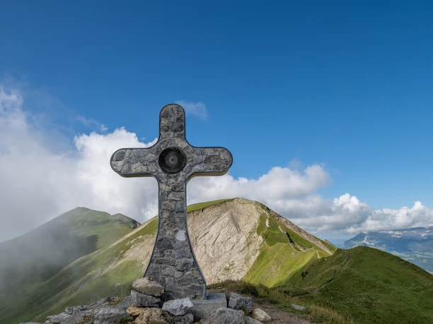 Do you know the story of the summit cross made from the four basic elements? Earth, built from limestone / Water, to bind the mortar / Fire, where the iron was forged / and for the air a hole was bored in the round wooden disc to integrate the fourth element! (Created by the Mändli-Chrizler from Giswil in 2003)