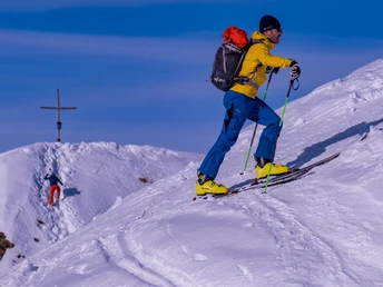 Additionally, it holds some special treats for experienced ski mountaineers. From the actual ski summit, an exposed ridge leads over to the summit cross, but this is only advisable under good firm snow conditions. Besides the brisk descent along the ascent route, the expert is enticed by the spectacular descents over the NW or the N slope, both at 45°. By the time you are inspecting your own tracks again with a broad grin on the terrace of the Druesberghütte, you have almost forgotten that the morning ascent on the forest road felt somewhat monotonous. This can be avoided, by ascending directly to the Steinhüttli and from there crossing to the Twäriberg.