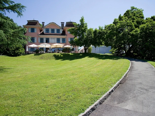 The trail then leads into the mystical Meggerwald forest. Take the right path to stay on the hiking trail. After a large clearing, you reach a junction. From there, the path leads towards Adligenswil. You reach the village church St. Martin and follow the hiking trail towards Sonnmatt. Through fields and meadows to the well-known Kurhaus Sonnmatt. Now follow Gerlisbergstrasse up to the Gerlisberg Monastery.