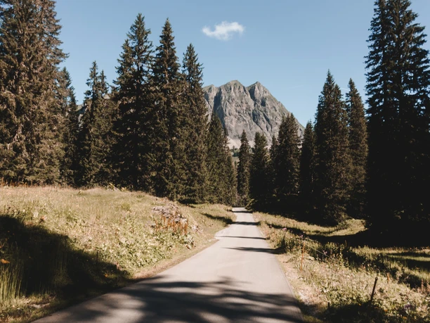 The hike leads alternately on roads, paths, and a Staldenweg uphill. The latter is listed in a 1923 trail directory of the Muothatal municipality as the only cattle trail for the northern valley side of the Starzlenbach. It shows typical features of a traditional alpine lane used by cattle. After about one and a half hours, the Schafmatt is reached. Surrounded by scree slopes, one walks on a beautifully laid path made of huge stone slabs. Further over the Bärenloch follows after just under four hours the Pragel Pass height at 1548 m above sea level.
