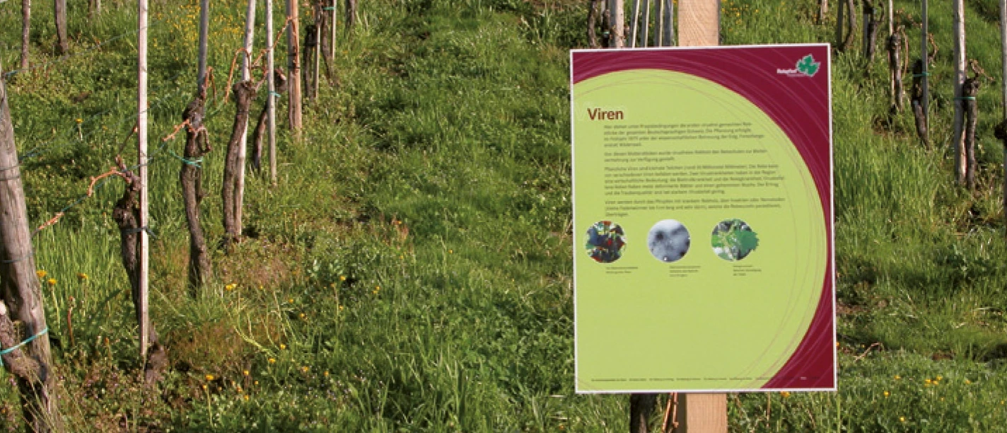 Since April 2004, 23 panels at Leutschen in Freienbach inform passing hikers about the daily work in the vineyard, the growth of the grapes, and the cultural beauty of the region.