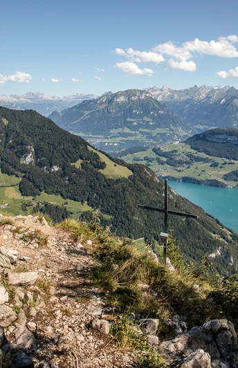 From the Wissifluh mountain station, you initially hike leisurely to the Wissifluh Hotel. From here you have a great view over Lake Lucerne and the Bürgenstock peninsula. Now begins the actual climb to Ausserurmi (1070 m), continuing to Oberurmi and from there to the summit of Vitznauer-/Gersauerstock. The exciting descent leads over Fälmis back to Wissifluh, where you can comfortably take the cable car back to the starting point in Vitznau.