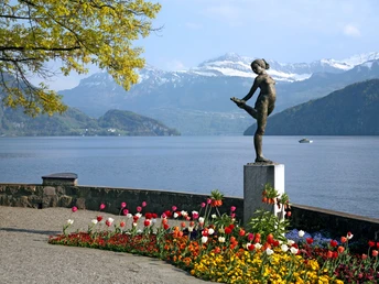 From the boat station Weggis walk along the lake in direction of Hertenstein. In the Unterdorf turn right after the Restaurant HYG, and then left at the next intersection, following Friedheimweg until, shortly after passing the Hotel Friedheim, you reach the Hügerihof farm. There turn left, pass the wonderful country estate Brünnihof, and follow the small path downwards through a meadow and a small forest, to the Eggisbühl farm. Turn right around the barn and follow the street to the edge of the Herrenwald woods. Just before the barbecue area turn left into the forest and follow the path. When you reach the barbecue area Röhrli go straight on and shortly afterwards you will see the ascent to the Haldihof farm. There you can have a short rest and enjoy the beautiful views. Continue along the path until you reach the main road, follow it for a short part to the bus stop, where you cross the street and follow the path through the fruit trees in direction of Greppen. After c. 800 metres you reach the first houses of the village. Follow Gütschstrasse, turn left, and after passing the main road, you stand in the middle of the historic village centre. From Greppen you can take a bus back to Weggis of walk back along the Chestnut Trail.