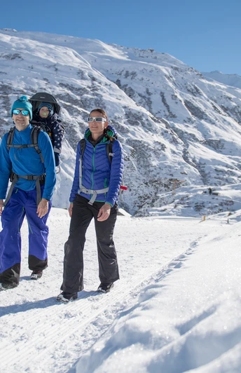 Thanks to the 1964 James Bond film “Goldfinger,” the Furka Pass road entered film history. The winter hiking trail runs exactly along this winding route. Where cars and motorcycles speed around the curves in summer, peaceful silence reigns in winter.