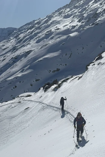 With the closure and dismantling of the Winterhorn ski area in Hospental, beautiful ski slopes have been created here that delight ski tourers. The ascent starts shortly after the village of Hospental, in the direction of the Gotthard Pass road. This is closed in winter and provides the first part of the tour. After a few bends on the snow-covered road, you climb up to the right towards the Winterhorn. The ascent is not very steep and leads over gentle slopes. The tour is perfect for beginners. The route leads past the former lift stations, over crests and up to the summit ridge. Once at the top, there are various downhill options. The descent to Realp is particularly quiet and attractive - a perfect tour for anyone traveling by public transport.