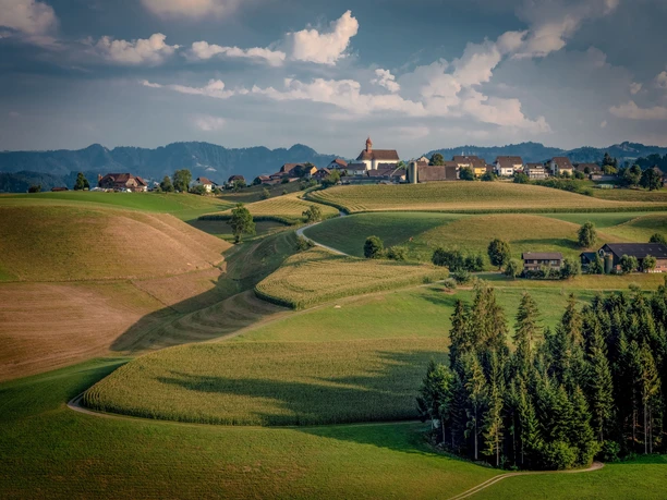 A beautiful country path takes us from the village of Zell up to the scenic hill Stocki. From there, we follow the varied hiking trail in the footsteps of the Jakob pilgrims. The path passes beautiful farms and gentle hills. Soon we cross the Luther, which gave its name to the valley. Here we have the opportunity for a detour to Hüswil to stop at the Rest. Engel/Sindang Reret. Passing an impressive gravel plant, we hike to Ufhusen, the village with the beautiful view and a village shop. Soon we cross the well-known “Grenzpfad” which leads from Langenthal to the Brünig. The path gently continues through forest and meadow areas, until we see the first houses of Huttwil.