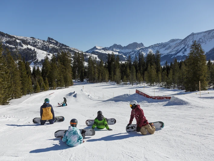 - Sessions communes dans le snowpark entre personnes partageant les mêmes intérêts - adaptées au niveau de chacun.
