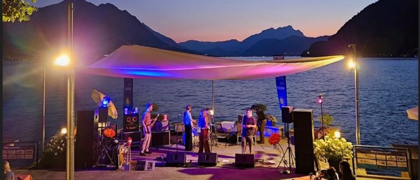 Dans notre loge située directement au bord du lac - avec une vue dégagée sur le ciel et les montagnes - la musique peut être appréciée dans sa plus belle forme. Accompagné d'un café, d'un apéro ou d'une bière fraîche de notre bistrot, tandis que les bateaux à vapeur défilent. Lors des concerts du soir en particulier, les sons entraînants et les spectacles impressionnants du ciel garantissent des moments inoubliables.