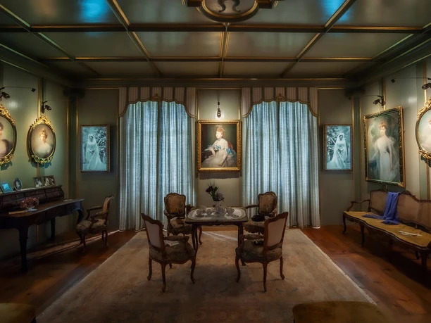 Le fait est que les Pfyffer de Heidegg, qui ne manquaient jamais une fête, ont fait don de leur joyau au canton de Lucerne en 1950, par pure nécessité, parce qu'ils n'avaient plus d'argent - et ont reçu en échange une rente annuelle de l'État, que Lucerne, mort de la faucheuse, n'a dû verser que pendant trois ans. Le résultat de la revitalisation et de l'aménagement, le Heidegg Home Story, est empreint de charme et d'amour du détail et se laisse voir et entendre : Dans les six pièces, de la chambre des dames à celle des messieurs, les Pfyffer de Heidegg étalent leurs joies et leurs peines, interprétées par des actrices professionnelles. Et Mathilde, l'aînée de la famille, décédée il y a plus de soixante-dix ans, appelle toutes les heures de sa voix rauque dans le Salon Jaune - et rit et se chamaille avec ses parents et ses sœurs, tantôt méchante et méchante, tantôt plaisante et douce : les derniers Pfyffer von Heidegg (1875 à 1953) déballent leurs secrets - un plaisir pour les contemporains de tous âges.