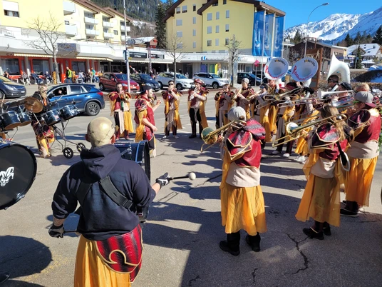 Devant le Rothorn-Center, la Guuggenmusik Rothornfäger de Sörenberg organise la finale du carnaval et fait ses adieux au carnaval 2026.