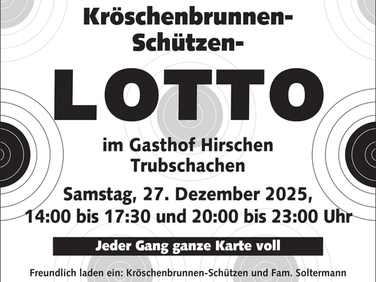 Depuis des dizaines d'années, le loto connu pour les super-rendez-vous, le Schützen Kröschenbrunnen au Landgasthof Hirschen Trubschachen.