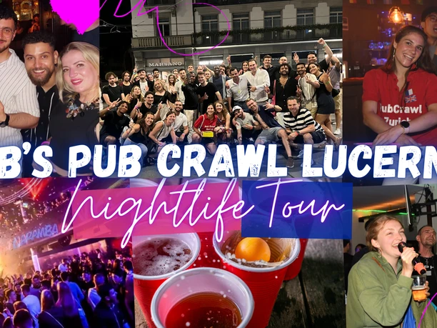 Découvre la vie nocturne animée de Lucerne lors du légendaire Pub Crawl Tour. Découvre les bars les plus populaires de Lucerne et fais la fête avec une foule internationale dans une atmosphère inoubliable.